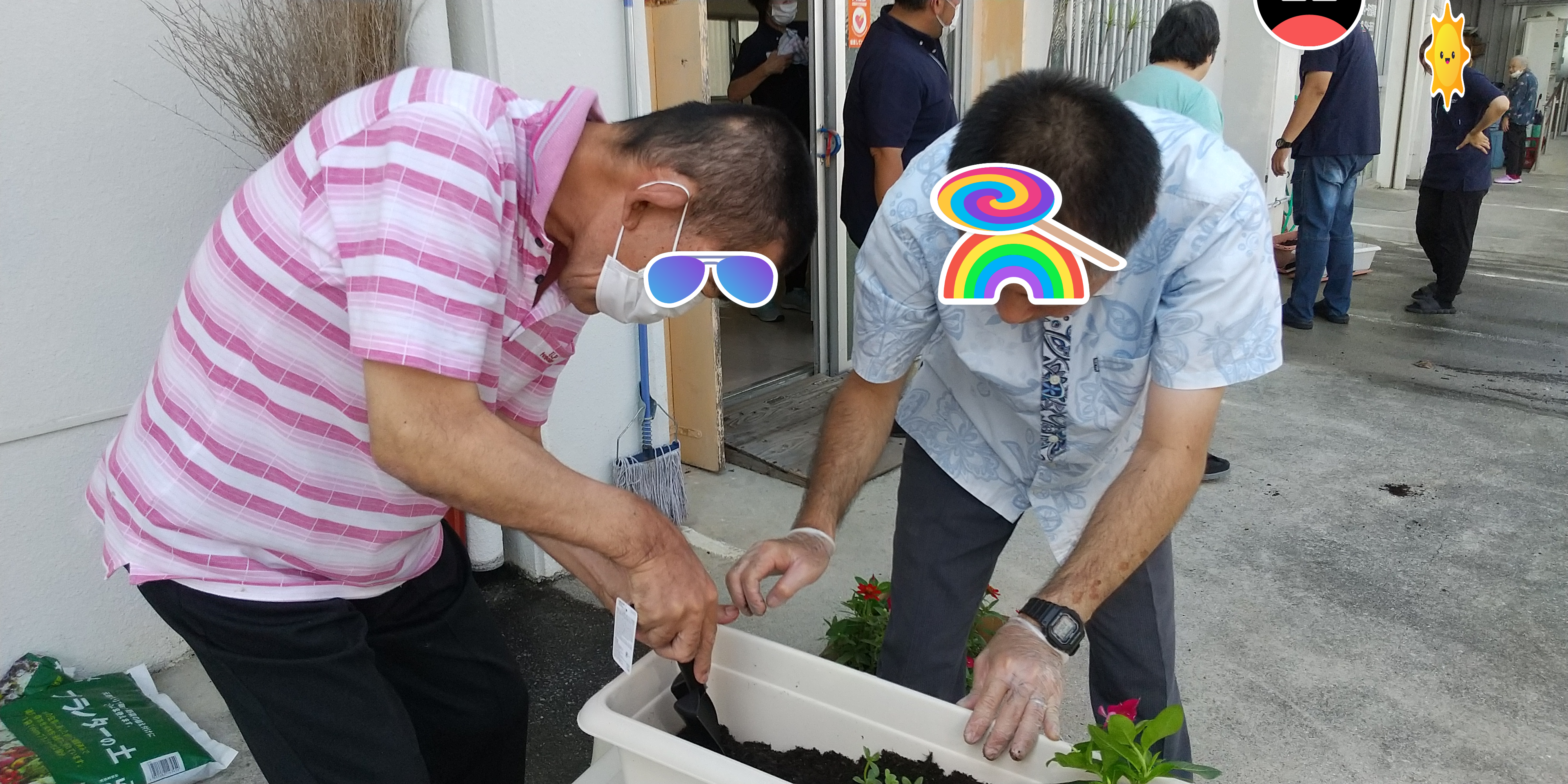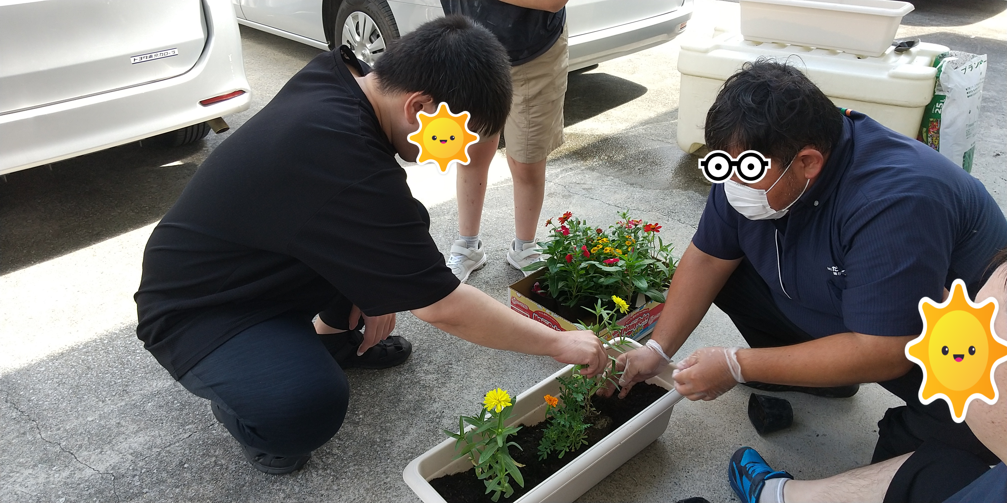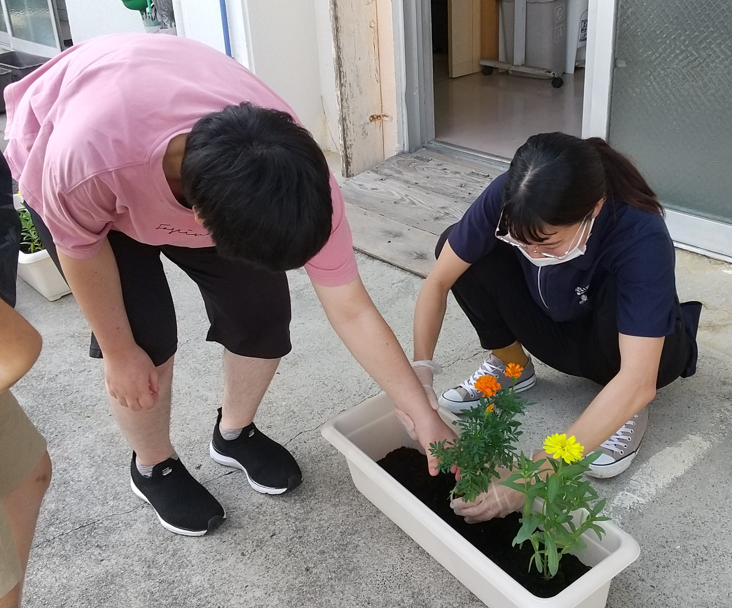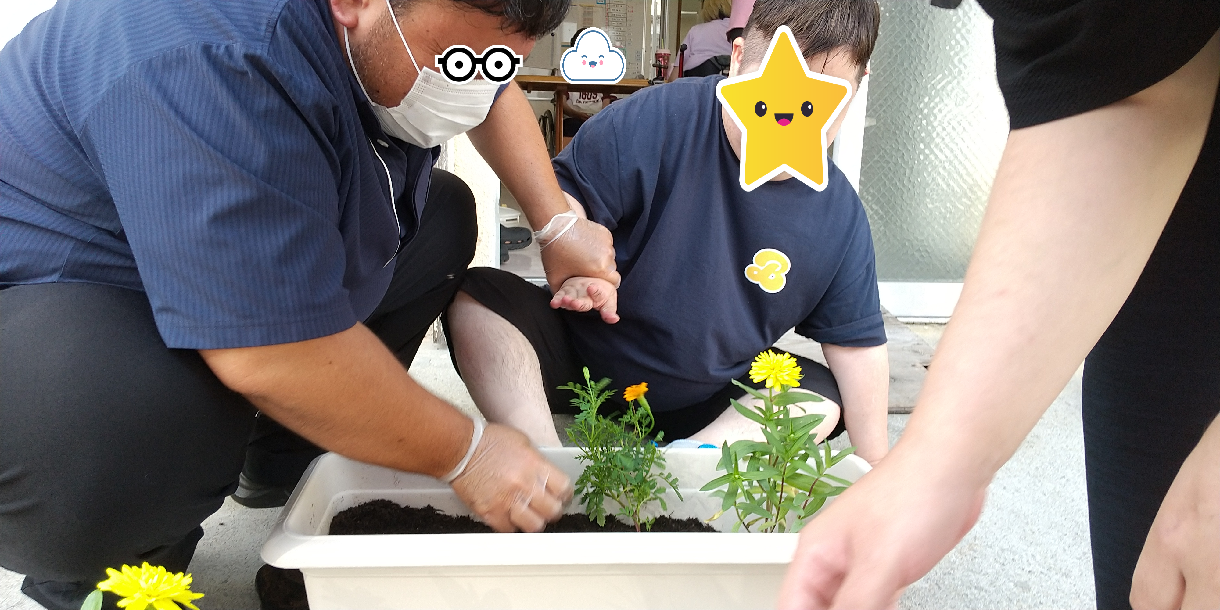 利用者さんみんなで、花の苗をうえました。